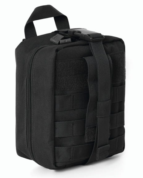 Apteczka posiada praktyczną torbę oraz panel udowy. Została skonstruowana tak, by mogła być przymocowana do oporządzenia taktycznego zgodnego ze standardem MOLLE 40/25 lub noszona na udzie dzięki panelowi mocowanemu gumowymi pasami lub adapterem.