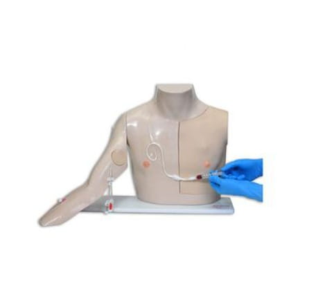 Model Chester Chest™ z ramieniem do dostępu do portu jest szczególnie przydatny w edukacji klinicznej — służy do nauki infuzji, pobierania krwi, wiązania opatrunków, oceny i walidacji kompetencji personelu medycznego w obszarze centralnego dostępu naczyniowego.