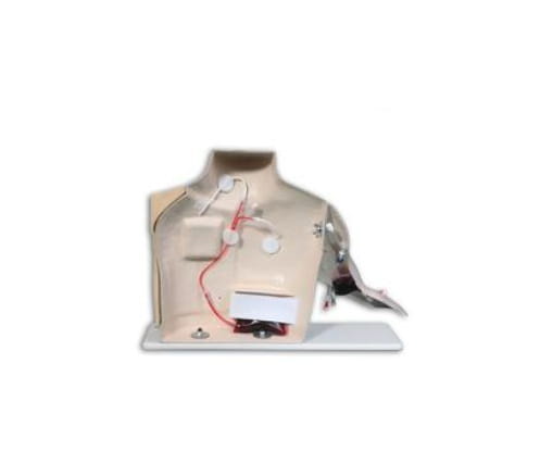 W prawym obszarze klatki piersiowej model wyposażony jest w tunelowany cewnik centralny o średnicy 9,6 Fr, który jest widoczny aż do okolicy obojczyka. Część zewnątrznarządowa cewnika ma mankiet z materiału Dacron, co zwiększa realizm i umożliwia praktykę prawidłowego obchodzenia się z takim elementem w rzeczywistych procedurach medycznych. Ponadto, model posiada lekko uniesioną żyłę szyjną zewnętrzną z otworem pozwalającym na podłączenie cewnika potrójnego światła, a także specjalne gniazdo w górnej części klatki piersiowej umożliwiające wprowadzenie cewnika podobojczykowego.