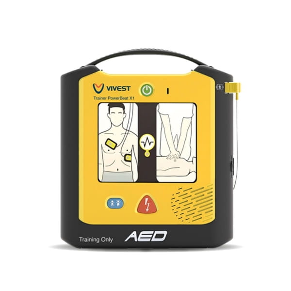 Defibrylator treningowy Vivest X1 to symulacyjna wersja modelu Vivest PowerBeat X1, stworzona z myślą o prowadzeniu szkoleń z zakresu użycia AED w warunkach bezpiecznych i kontrolowanych. Urządzenie imitujące funkcje defibrylatora medycznego pozwala uczestnikom kursów zapoznać się z obsługą prawdziwego sprzętu, bez ryzyka podawania rzeczywistego wstrząsu.