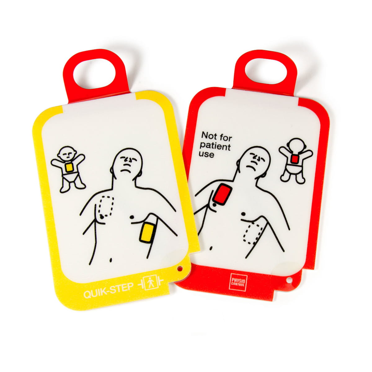 Para elektrod obejmuje wersję adult/child – czyli jedne elektrody, które mogą być używane w scenariuszach zarówno dla dorosłych jak i dzieci, przy czym urządzenie (AED / trainer) reguluje energię / instrukcje odpowiednio.
