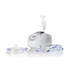 Kompletny zestaw z nebulizatorem, maskami (dla dorosłych i dla dzieci), ustnikiem i wężem łączącym zapewnia natychmiastową gotowość do użycia.