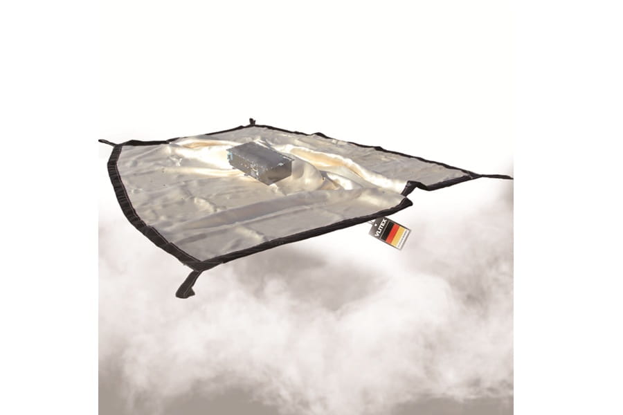 Koc gaśniczy ULTIMATE 3 x 4m VLITEX do gaszenia otwartych modułów akumulatorowych li-on, wielokrotnego użytku – 200257 + torba to specjalistyczne rozwiązanie przeznaczone do zabezpieczania i tłumienia pożarów powstających w otwartych modułach akumulatorowych litowo-jonowych. Produkt został zaprojektowany z myślą o zastosowaniach profesjonalnych, w szczególności w środowiskach przemysłowych, serwisowych oraz wszędzie tam, gdzie prowadzone są prace przy bateriach li-on o zwiększonym ryzyku zapłonu.