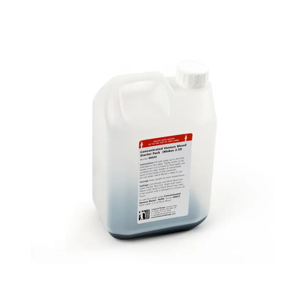 Koncentrat sztucznej krwi żylnej to specjalistyczny preparat przeznaczony do tworzenia realistycznego roztworu symulującego krew żylną w celach edukacyjnych. Rozcieńczony roztwór używany jest w fantomach, trenażerach i modelach symulacyjnych, w których potrzebne jest odwzorowanie przebiegu krwiobiegu żylnego (m.in. przy nauce wkłuć dożylnych, pobierania krwi czy symulacji krwawień).