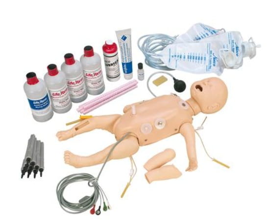 Deluxe Infant CRiSis Manikin to zaawansowany system szkoleniowy przeznaczony do edukacji ratowniczej i medycznej w zakresie pediatrycznej resuscytacji i interwencji zaawansowanych. Model odwzorowuje niemowlę, umożliwiając ćwiczenia takich procedur jak wentylacja, intubacja, dostęp dożylny i śródkostny (IO), pomiar EKG, wykonywanie ucisków klatki piersiowej oraz defibrylację. Urządzenie zawiera interaktywny symulator EKG z 4‑odprowadzeniowym pomiarem oraz funkcję automatycznej/ ręcznej defibrylacji i stymulacji pacingowej. Model wyposażono między innymi w skórę klatki piersiowej z funkcją defibrylacji, port pępowinowy do cewnikowania pępowiny, kończyny z dostępem żylnym oraz konstrukcję klatki piersiowej i dróg oddechowych realistyczną pod względem anatomicznym. Urządzenie spełnia wymagania szkoleń typu PALS (Pediatric Advanced Life Support), kursów pielęgniarskich, ratownictwa medycznego oraz symulacji klinicznych.