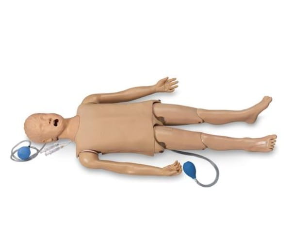 Podstawowy manekin dziecięcy Basic Child CRiSis™ (LF03765) to pełnowymiarowy model dziecka, stworzony z myślą o szkoleniach w zakresie zarządzania drogami oddechowymi oraz resuscytacji u dzieci. Model odwzorowuje anatomiczne szczegóły dziecka w wieku około 5 lat, co czyni go idealnym narzędziem do kursów PALS, ACLS, szkoleń pielęgniarskich oraz ratownictwa medycznego. Manekin posiada realistyczną jamę ustną, język, nos, gardło, nagłośnię, tchawicę, przełyk oraz obie płuca oddzielnie do celów osłuchiwania. Głowa, szyja i żuchwa są w pełni ruchome, co umożliwia realistyczne zastosowanie manewru podciągnięcia żuchwy (jaw thrust). Model pozwala na intubację: doustną, cyfrową lub nosową, a także wprowadzenie E.T., E.O.A., P.T.L., L.M.A., E.G.T.A., Combitube® oraz King System. Ponadto manekin wyposażono w nadmuchiwaną „pęcherzową” konstrukcję żołądka, sygnalizującą niewłaściwe intubowanie przełyku. Produkt objęty jest 5-letnią gwarancją producenta.