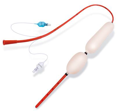 - lateksowy balon na wysokości przełyku i lateksowy balon żołądkowy z pierścieniami nieprzepuszczającymi promieni rentgenowskich na każdym końcu