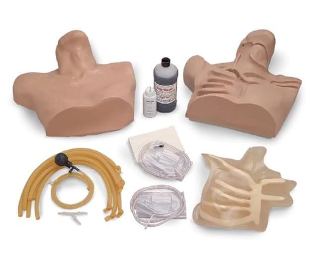 Zapasowa skóra i żyły do symulatora kanulacji dożylnej centralnej to komplet wymiennych części przeznaczonych dla trenażera centralnej kaniulacji żył (Central Venous Cannulation Simulator) o numerach referencyjnych W44017 / LF01087.