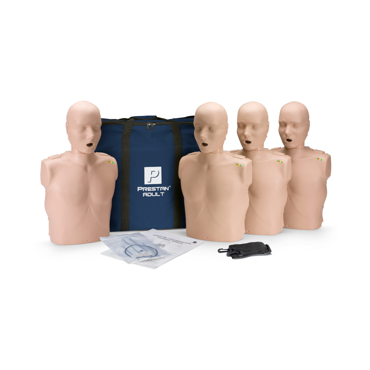 Zestaw 4 fantomów Prestan Adult to profesjonalny komplet szkoleniowy zaprojektowany do prowadzenia zajęć z resuscytacji krążeniowo‑oddechowej (RKO) u osób dorosłych. Fantomy te umożliwiają ćwiczenie wszystkich standardowych elementów BLS: uciśnięć klatki piersiowej, wentylacji, użycia AED, a wszystko to w warunkach możliwie jak najbardziej realistycznych.