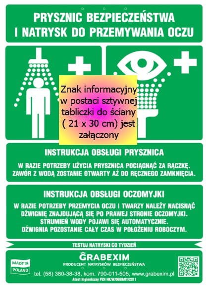 Przeznaczony do zakładów przemysłowych, laboratoriów i miejsc, w których może dochodzić do kontaktu z substancjami niebezpiecznymi — zapewnia szybki dostęp do spłukiwania ciała i oczu w razie wypadku.